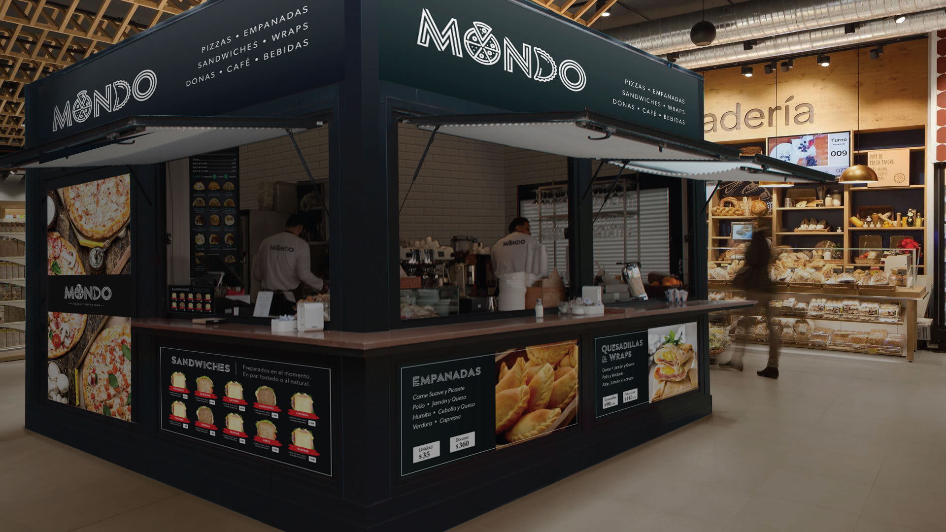 deportivas, supermercados, restaurantes, kioscos y